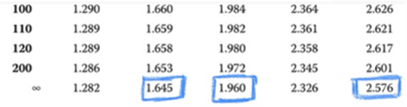 双尾检验(对应你截图的左边):df=正无穷,p=a/2=2.5%,the critical value应该是t(正无穷, 0.025)=1.960。