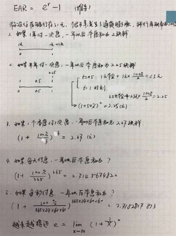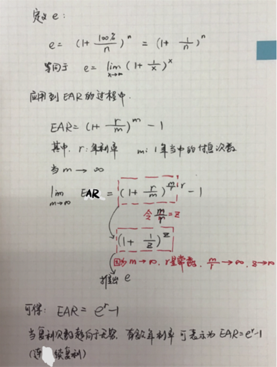 为什么连续复利的情况下,EAR=e^R-1,能否推导说明下