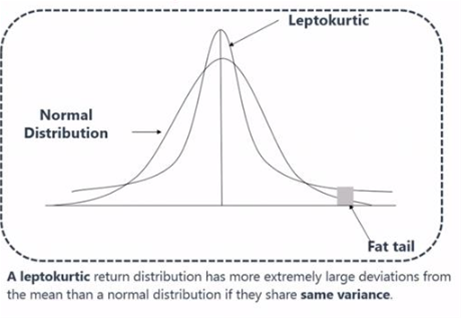 这里有一个前提条件,所要研究的分布与正态分布的方差相同(截图最后有一个“same variance”信息),即两组数据通过方差衡量出的离散程度相同。若所要研究的分布为高峰,说明这组数据在靠近均值的部分数据多,分布比较集中。为了保证总体的离散程度相同,则在远离均值的地方分布必须比较松散,即极值出现的可能性比较高,所以会出现“肥尾”的现象。