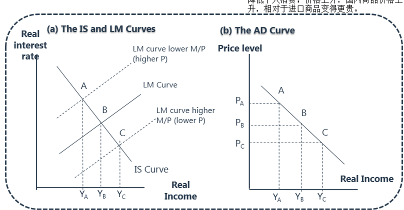 影响货币供给,那么物价水平就会上升,实际利率上升,LM左移,那么相应的投资减少,Y减少,AD左移
