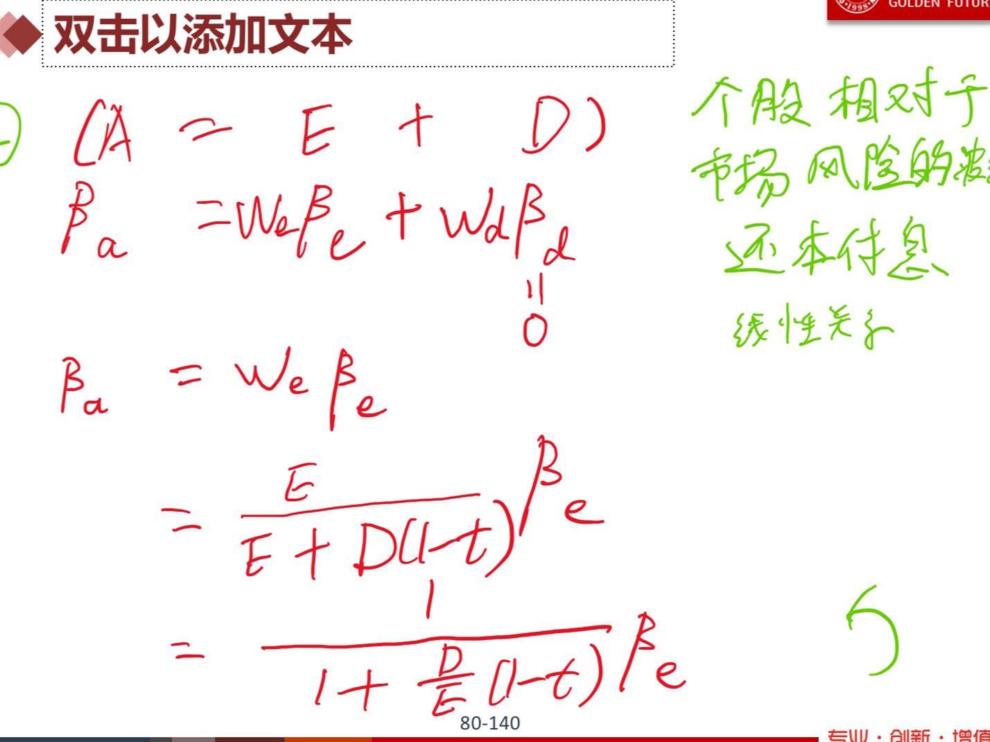 beta指的是相对于市场风险的波动,因为debt是还本付息,不存在beta风险,这里的 beta debt 为0