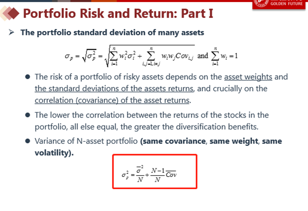 32题:组合的方差由资产自己本身的收益率的方差,和资产之间的协方差,这两部分构成。