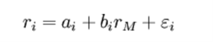 SCL是证券i的实际收益率ri与市场组合实际收益率rm间的关系,用于描述一种证券的实际收益率,公式如下图所示,这里的斜率其实就是β,并且回归方程里面有残值。这个回归方程画出的线就是SCL,横坐标是r m。