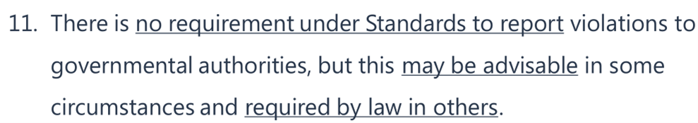 这个点的意思是说,虽然ethics并不要求向当地政府机构报告违规行为,但是当地的其他法律可能有所要求。