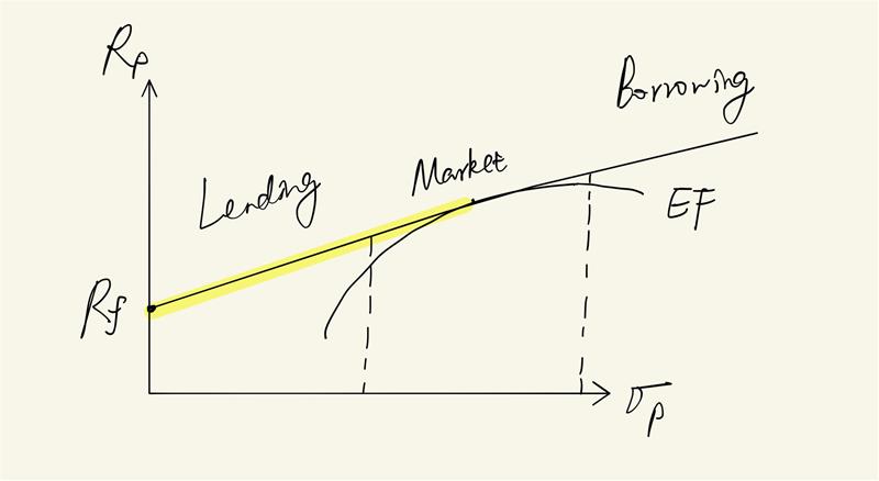 老师我是从图中看的。不理解的就是黄色部分,收益也是高于EF的啊,这部分是投了market和存了银行。这该怎么理解