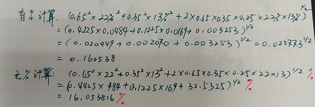 老师我不是纠结这个单位,我用0.65^2. 0.22^2这样不去百分号带进去算,不是也对吗? 但是我咋算了好多遍,结果不一样呢??