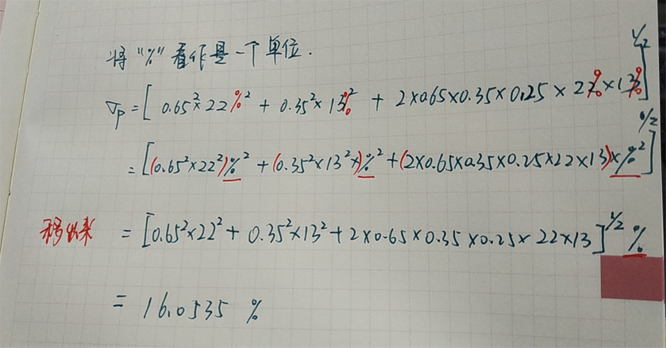 这个题目只是对标准差这样处理了,其他的没有按照“%”是单位处理,这样的解题思路比较“外国人”,我们一般情况下就是按照%=0.01的意思求解的,在这个问题上别纠结了,说白了是表示形式,外国人有些很偏爱这种形式,其实没多少逻辑思路在其中。