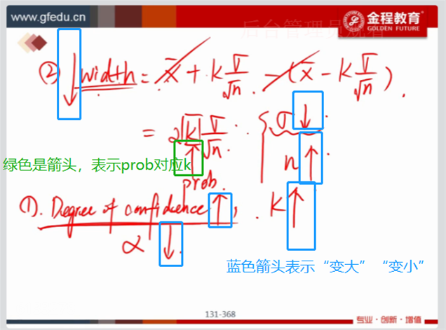 Width 越窄越准确,也就是width数值越小越好。 根据公式是K越小,width越小。 K越小, 那么概率(置信区间对应的概率)就是越小啊, 那最后不是degree of confidence 越小。换句话说,degree of confidence越大, k越大,那么根据width的公式width变得越大。