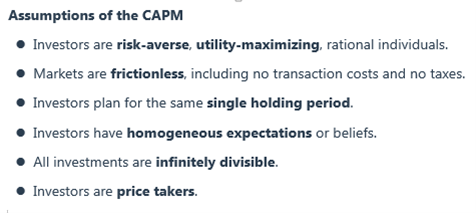 老师, 关于CAPM的几个假设好像没有将,能大概说一下吗? 是讲义中 PP67-214页上面的知识。