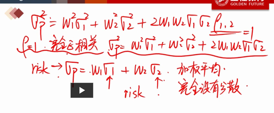 图中所讲的不是当相关系数等于意识,是完全正相关,是完全没有分散风险吗?