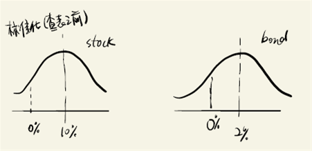 为什么标准差小的 它的收益占左边的面积就最多 还有一个问题,就是在对股票和债券标准化的时候,为什么是0-均值,这个0是从哪里来的