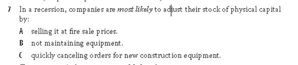 题目中的A 是at a fair price 不是FIRE PRICE!!!!!!!!! 所以为什么A 不对???在recession中工厂try to sell their physical capital at a fair price.以一个公平的价格卖出去为什么不可以