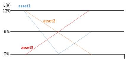 这题不需要进行计算。本道case建议把三个资产的收益用图像进行表示。如下图