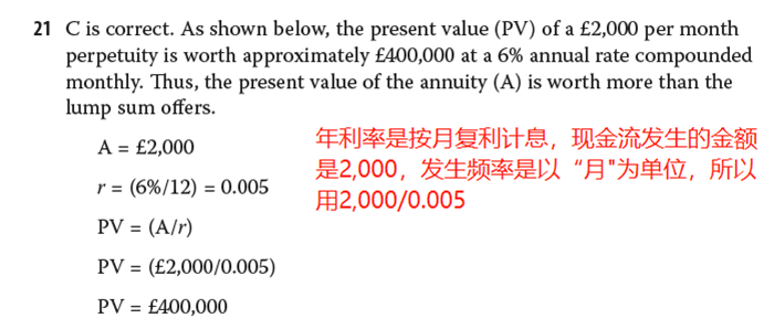 老师,这道题中a perpetuity of £2,000 a month beginning,月初发放,那么PV不应该是402000吗?