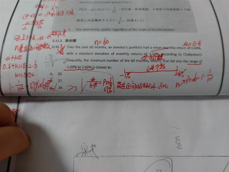老师 这道题为什么k=57,要✖️60?这道题是考哪个点?老师切比雪夫的3个考点能给我梳理一下吗?