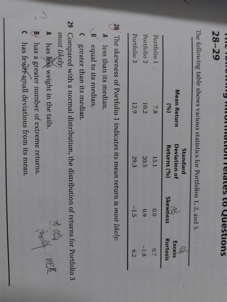 与正态分布相比,投资组合3的收益分布最有可能:
