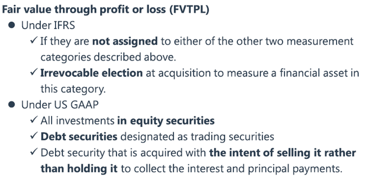 老师这里想要强调的是美国准则下目前的trading security的会计处理和FVTPL是一样的哦