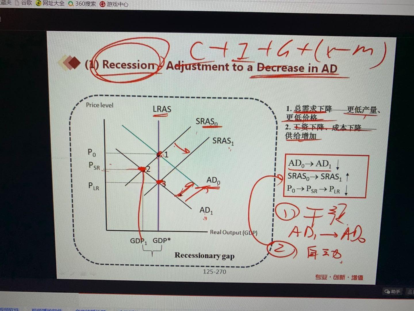 请问老师,图上P0到Psr到Plr,老师讲的就是因为价格水平下降,工厂成本降低导致AS右移到与AD1交叉与点3达成平衡,应该如何理解?