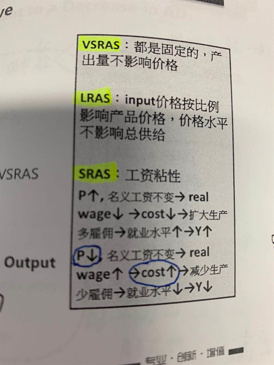 谢谢老师,这个点已经明白了。那么物价水平和工资成本的关系,该章节前面讲工资粘性时候是说物价水平下降引发员工成本上升(名义工资不变而实际工资上涨),和AS曲线这块的结论不太一致,应该如何理解?