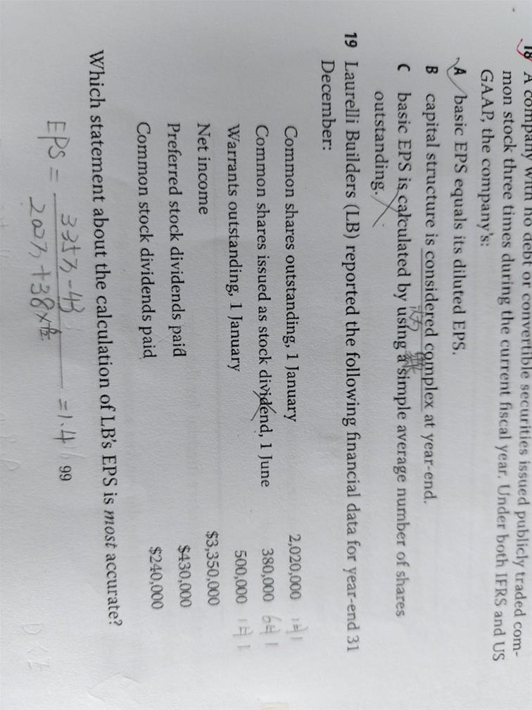 这道题目当中由于没有告知warrant的转换价格,因此这里无法计算DEPS的哦
