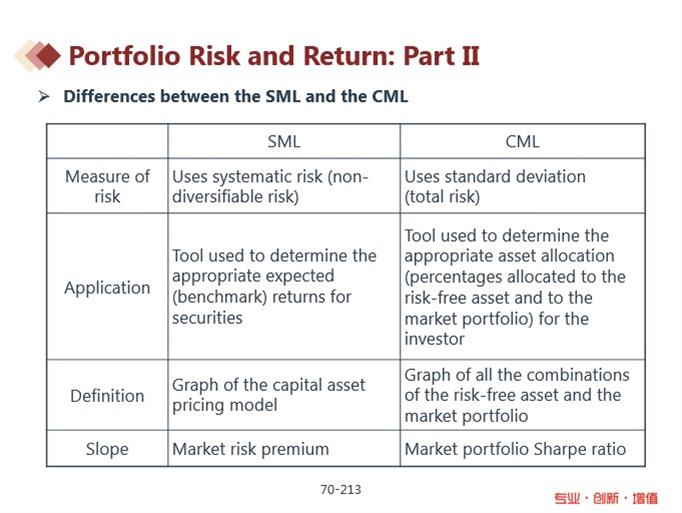 第三,理论依据不同。SML是依据CAPM模型,CML依据资本市场理论。