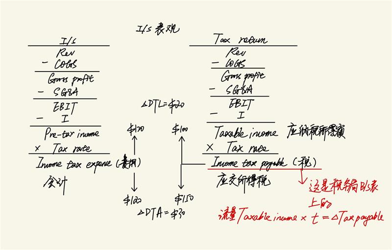 课上这个图给我弄晕了。这个taxable income是个流量值,乘税率得到的应该是delta tax payable,这个tax payable其实是存量值。老师写一块,,,容易让人理解错了