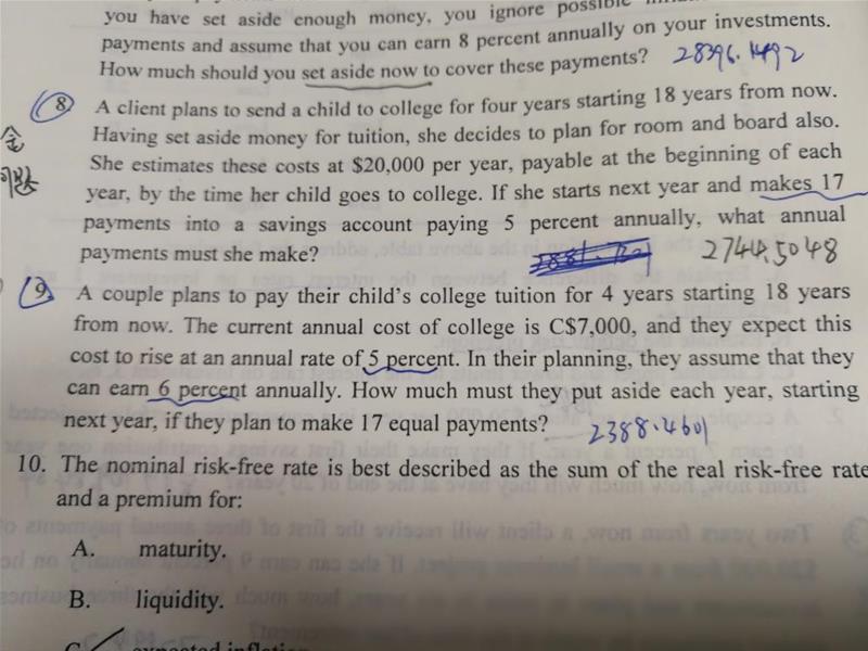 第九题不懂,请问大学四年期间,学费也是按照每年5%增加吗?