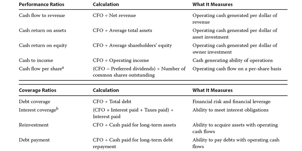 分子都是CFO。以下的表格中显示了每个指标分别衡量的意义。