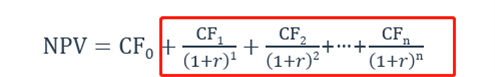 NPV=CF0+未来现金流折现求和