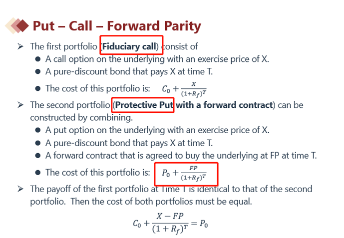 本题考查的知识点是fiduciary call 和protective put的公式。请参考附图~