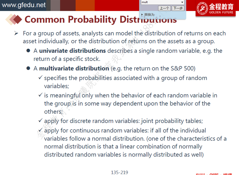 多元正态分布大概在P135左右,知识点名称是“Univariate and Multivariate Distribution”。