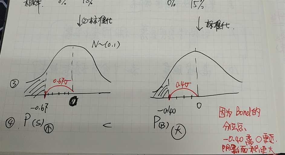 解析用的是“标准化”的思路,题目给出两个投资工具的收益率服从正太分布,于是在标准化之后就可以比较谁更容易出现负的收益了。