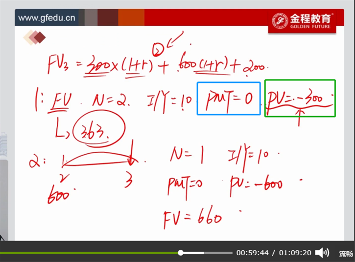 PMT表示的是每一期发生的CF,每一笔现金流如果单独考虑的话,CF就是PV,直接计算他们的FV即可,不用考虑PMT,所以PMT=0。