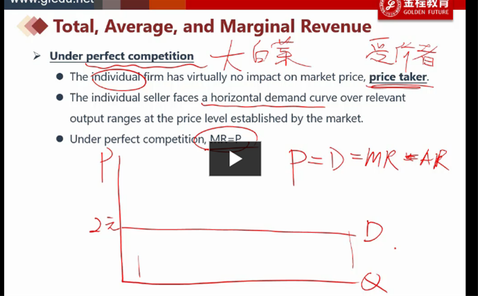 P=Q=AR=MR,这是完全竞争市场短期,长期是P=Q=AR=MR=MC=AC,这些都能理解,就是这个P=Q啥意思,不是指需求函数吧。