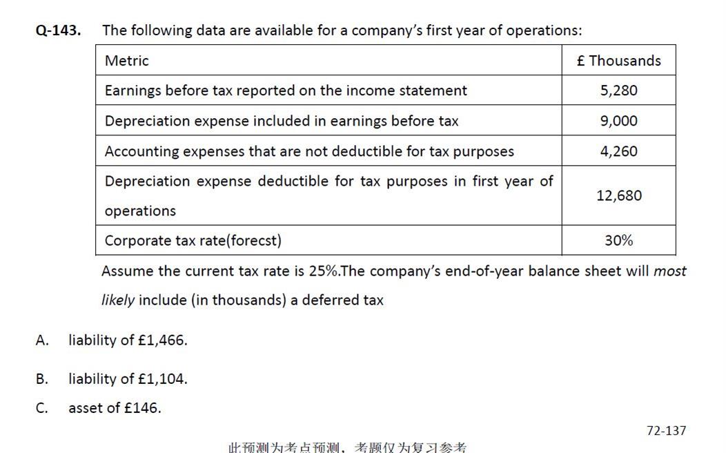因此应当采用的是未来的税率,因此不能用current的税率25%,而应该用预测的税率30%