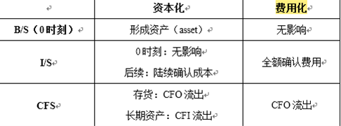 如果当期的一项支出,预期在未来能够创造经济价值,则将其资本化。资本化是指将支出的成本,按资产计入资产负债表。长期资产其实就是资本化了的支出。根据支出性质的不同,企业将这些资本化的支出分别计入固定资产、无形资产或其他资产,并在其使用年限中将这些支出分摊入成本或费用。同时,长期资产购入时的现金按投资现金流支出(-CFI)计入现金流量表。