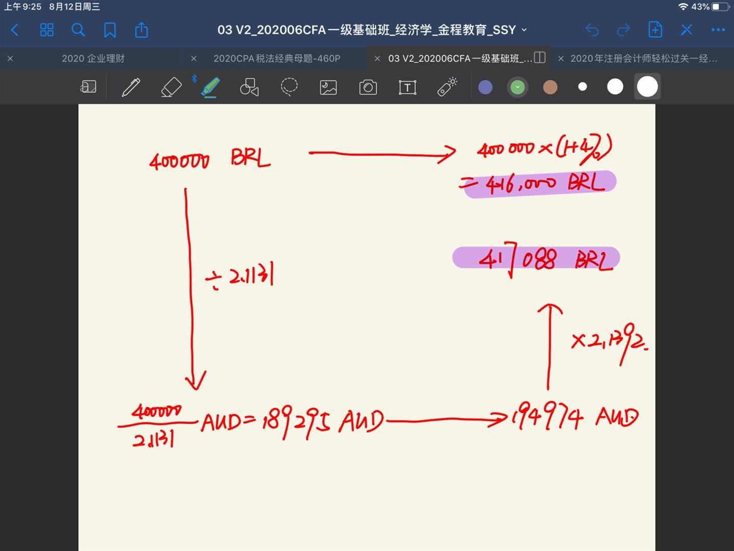 下面的流程就是用BRL换AUD,然后投资一年,之后换回BRL得到的金额
