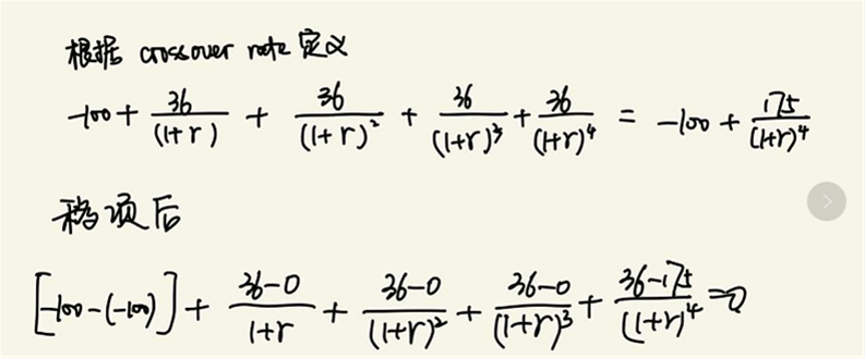 然后未来现金流折现之后NPV为0,符合IRR的定义