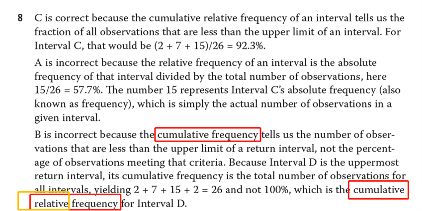 老师,这道题的B选项错误的原因就是因为缺少“relative”这个单词是吗?是说就没有cumulative frequency这种表达方式吗?