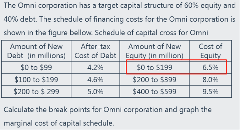 这里也不是算出来的哈,是根据第一个表格中的数据,如果equity融资在0-199之间是6.5%