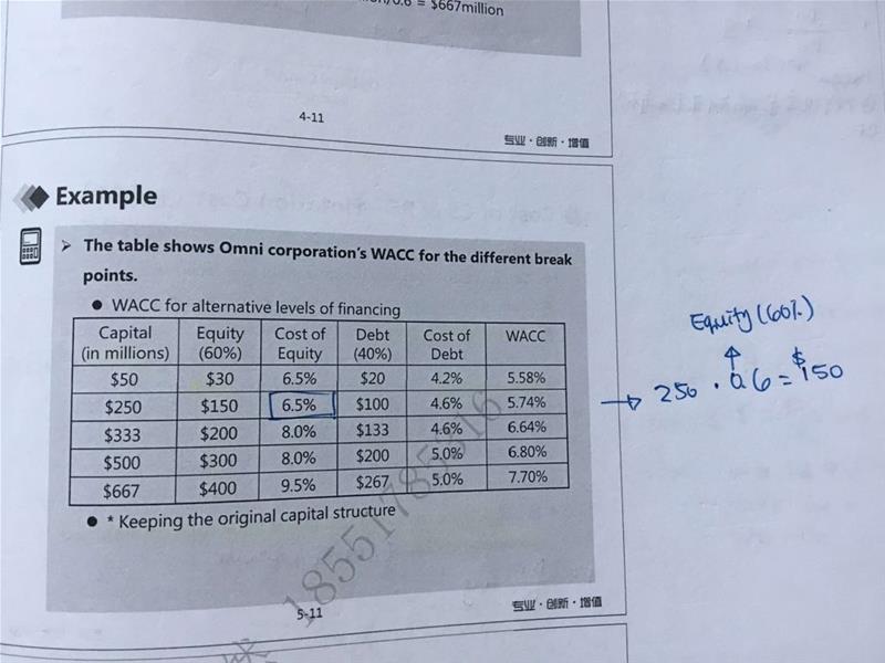 此时根据临界点,250之前cost of capital是5.58%,250-333之间是5.74%。