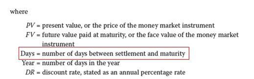 题干中说到了The number of days between settlement and maturity is 350。一般用的都是题干中给出的数据。