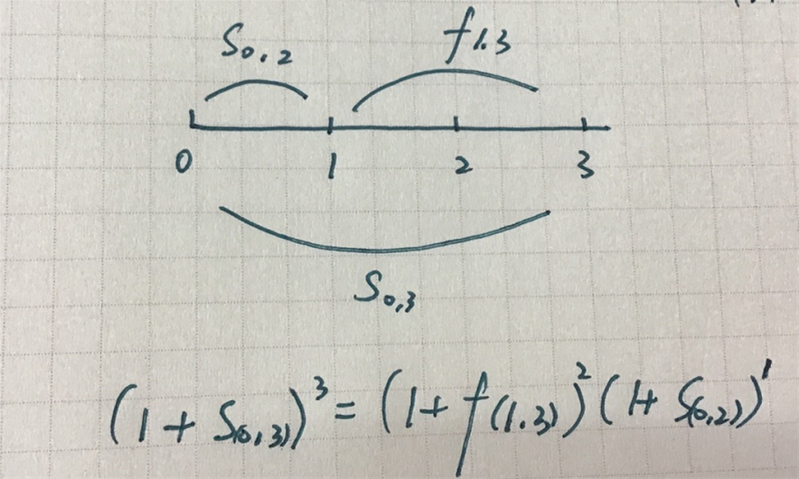 嗯嗯,你的理解是正确的。准确的说,即期利率和远期利率的报价是按照年利率报价,如果时间轴0-1表示一年,那么由附图中的关系式