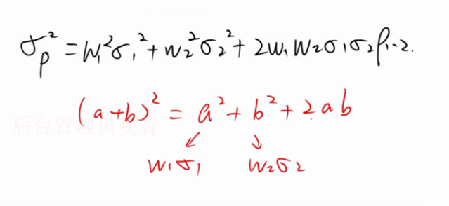你的理解是正确的,σp是投资组合的标准差,图中在求投资组合的方差,求出的是A和B两个资产做组合得出新的投资工具的标准差,可以用来衡量风险程度。