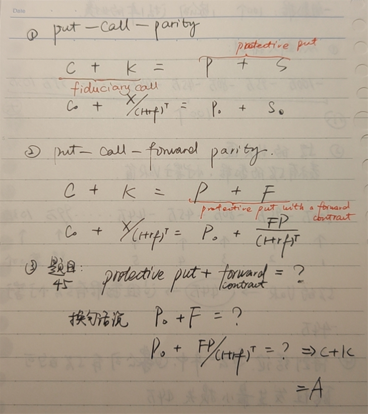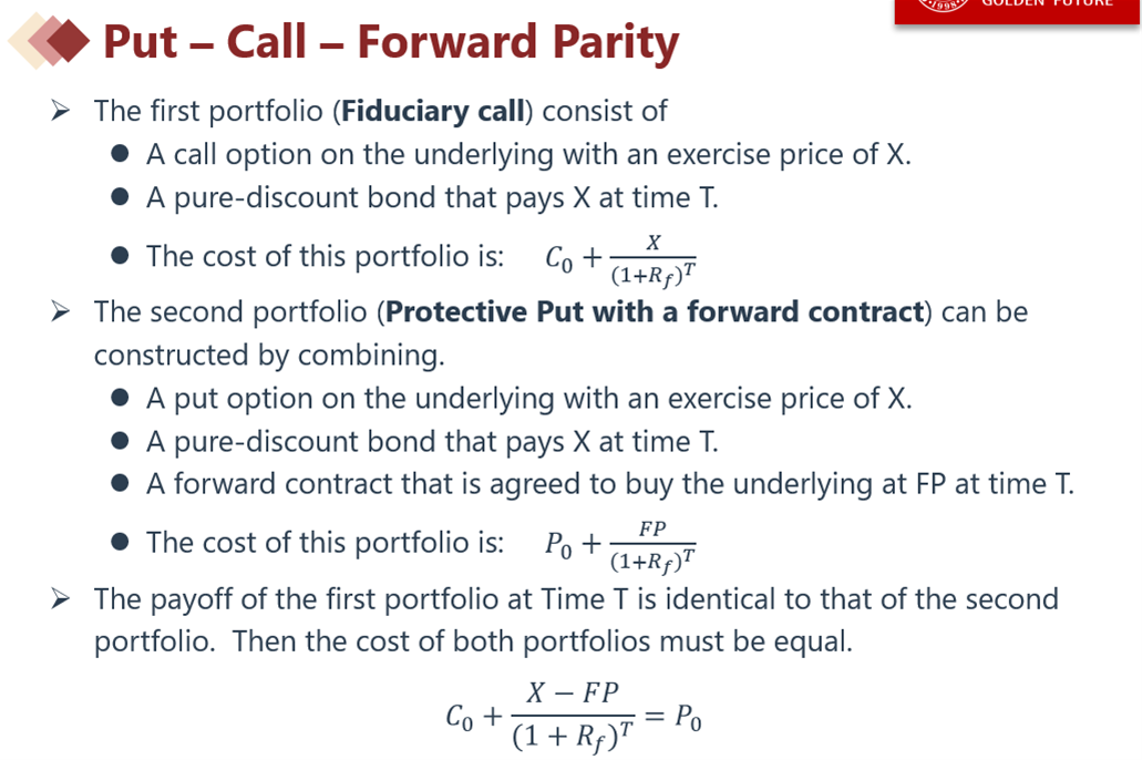 具体来说相当于我们在t=0时刻签订了一份远期合约,约定FP价格在t=T时刻买来标的资产,那么FP这么多钱哪里来的呢,是在t=0时刻买了债券到期赎回得到的FP,long risk-free bond表示t=0时刻买债券,t=T时刻到期赎回,得到面值FP,用FP去买标的资产。
