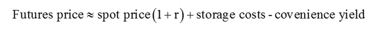 而期货价格的公式中会使用到便利收益率,但是这里不会考察计算,定性了解一下即可。