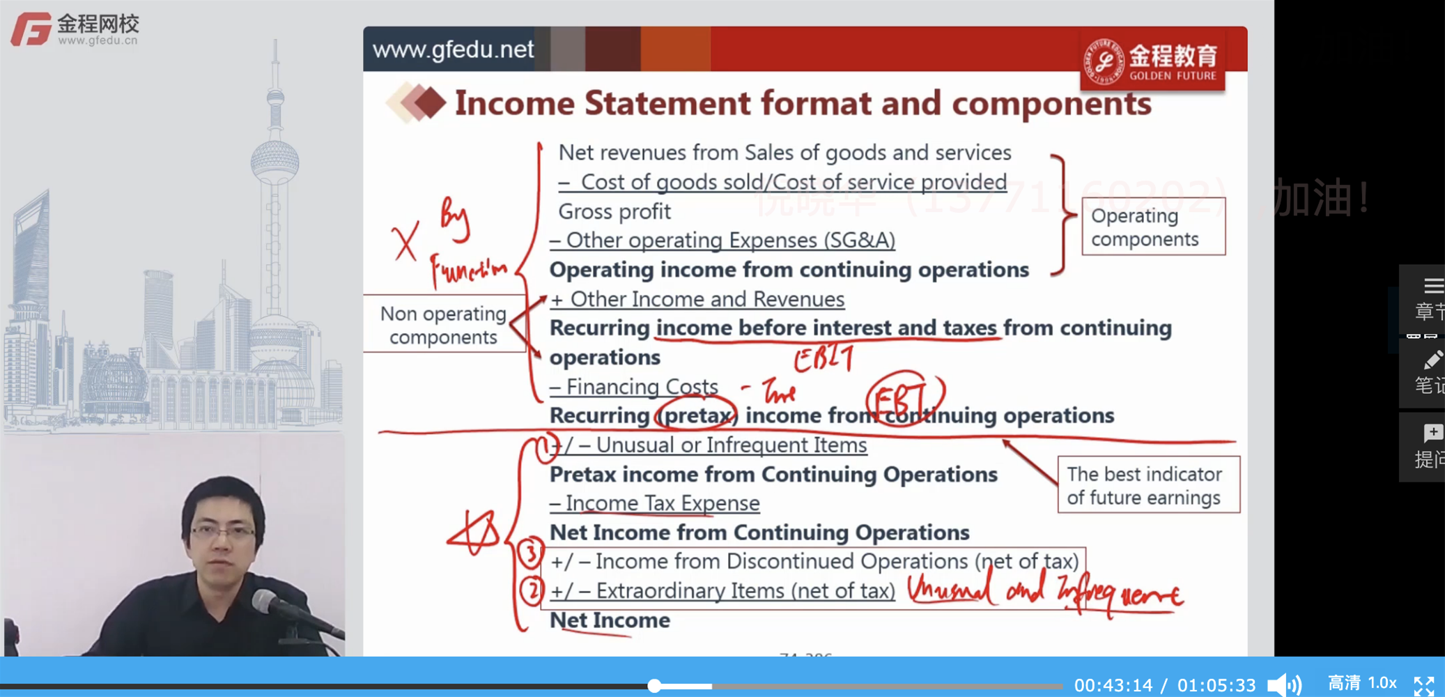 下图基础班讲义中的利润表只是将费用划分为了recurring和non-recurring的部分,并没有说non-recurring之前的是EBIT哦