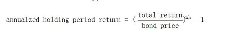 公式见下图。分子就是coupon及coupon reinvestment收益加上债券卖出的价格,分母就是债券当初的买价,相除后年化一下就是年化的持有期收益