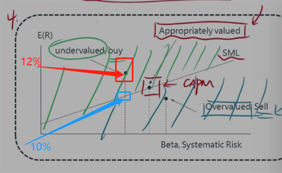 这里不太理解,线上方的点,不应该是高估吗?因为一样的风险,收益比sml上的点更高,谢谢