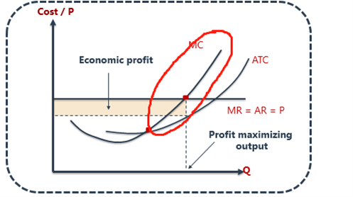 而完全竞争市场下的供给曲线可以画成MC曲线中高于ATC的部分,因为完全竞争厂商在利润最大化定价的条件下